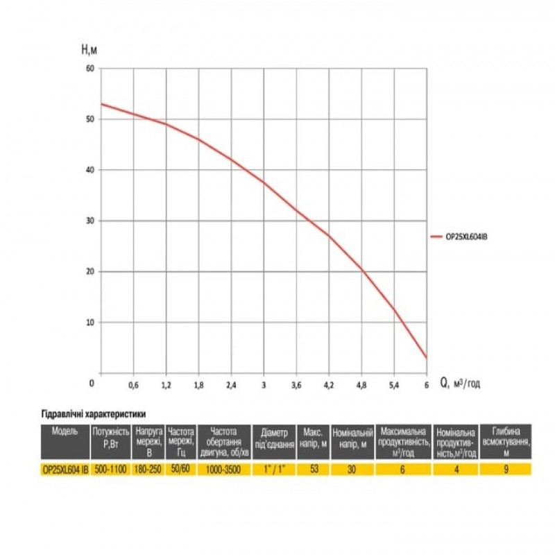 • Висота напору, м: 53